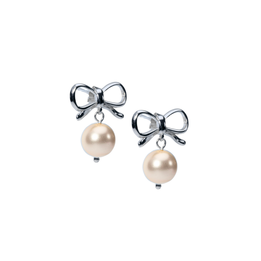 Bow Pearl Stud Earrings Silver