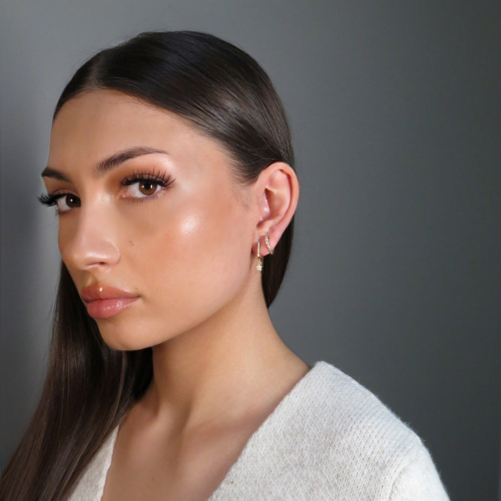 These earrings feature shimmering zirconia stones paired with a charming star accent, adding a touch of celestial elegance to your look.