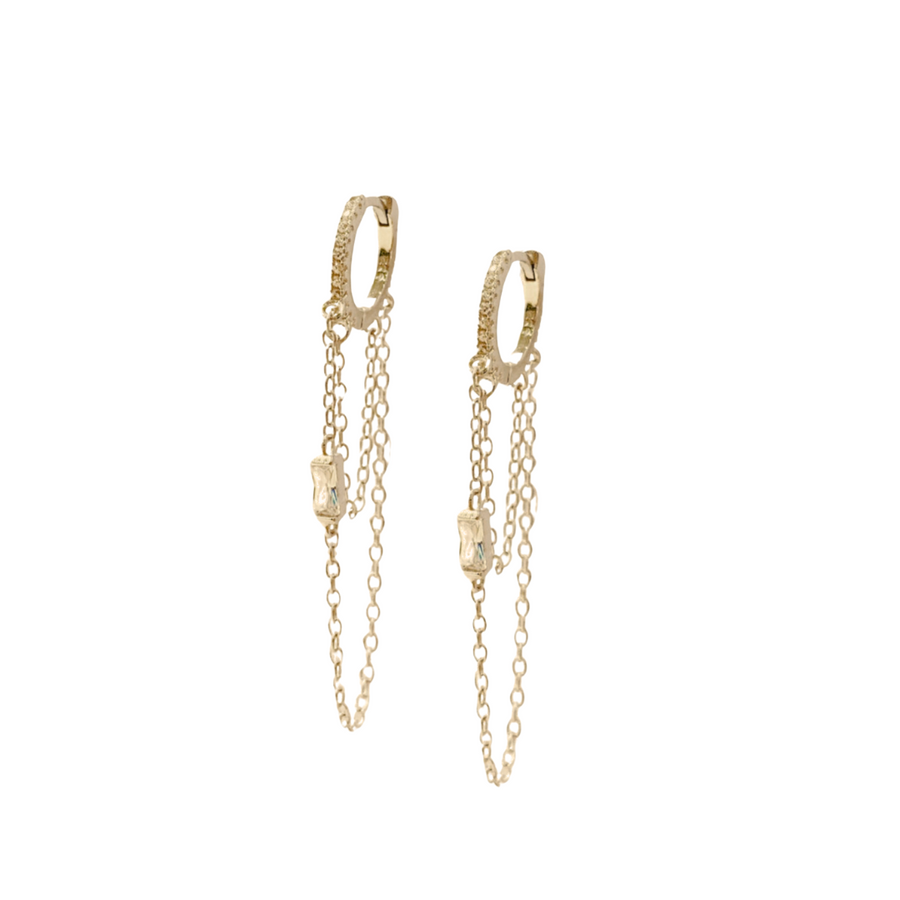 Mini huggie with radiant Cubic Zirconia charm details. Great to stack and build your ear stack!