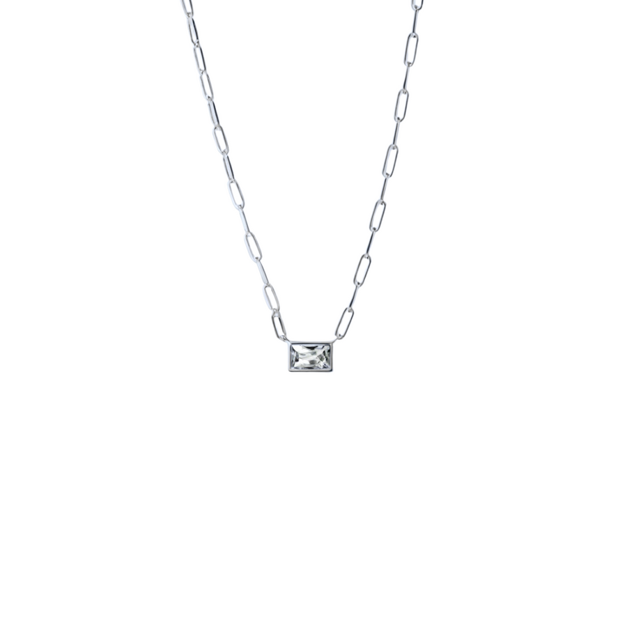 This minimalist necklace features a rectangular zircon pendant, adding a touch of understated elegance. The geometric shape creates a modern and stylish look, while the delicate chain complements the design perfectly.