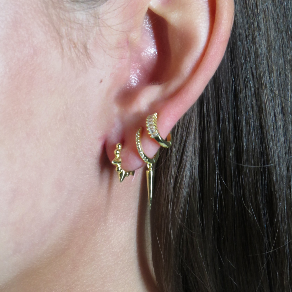 Spike huggies. These are for that trendy everyday sass, offering a playful yet edgy vibe that effortlessly elevates any outfit. Perfect for adding a touch of personality to your daily style, they combine modern design with bold flair.