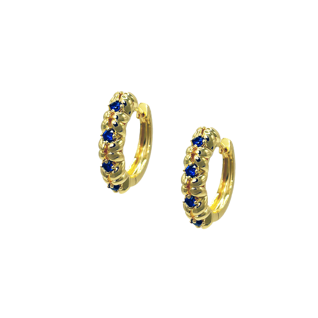 Elevate your everyday elegance with the Amelia Huggie Earrings. Crafted from sterling silver and plated with luxurious 18K yellow gold, these huggies feature a row of sparkling amelia blue spinal stones, adding a touch of brilliance to your look. Their sleek, minimalist design ensures they complement any outfit, from casual to formal.